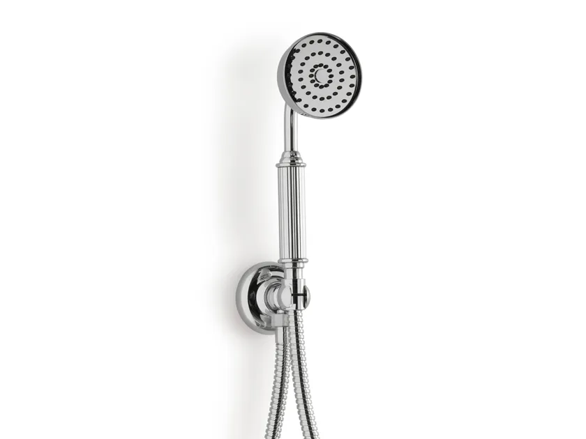 Round overhead shower with anti-lime system with external tube